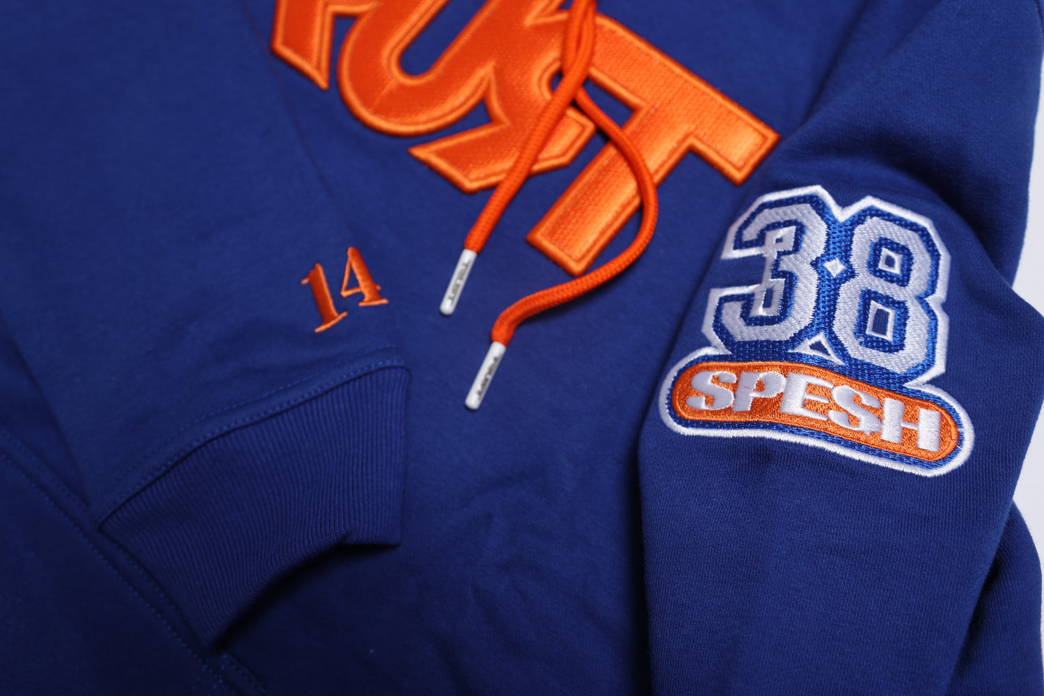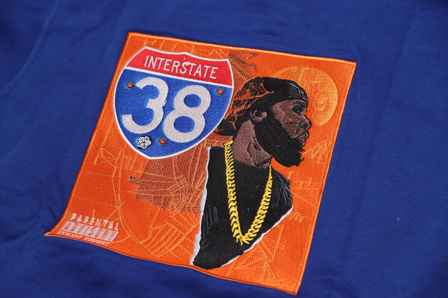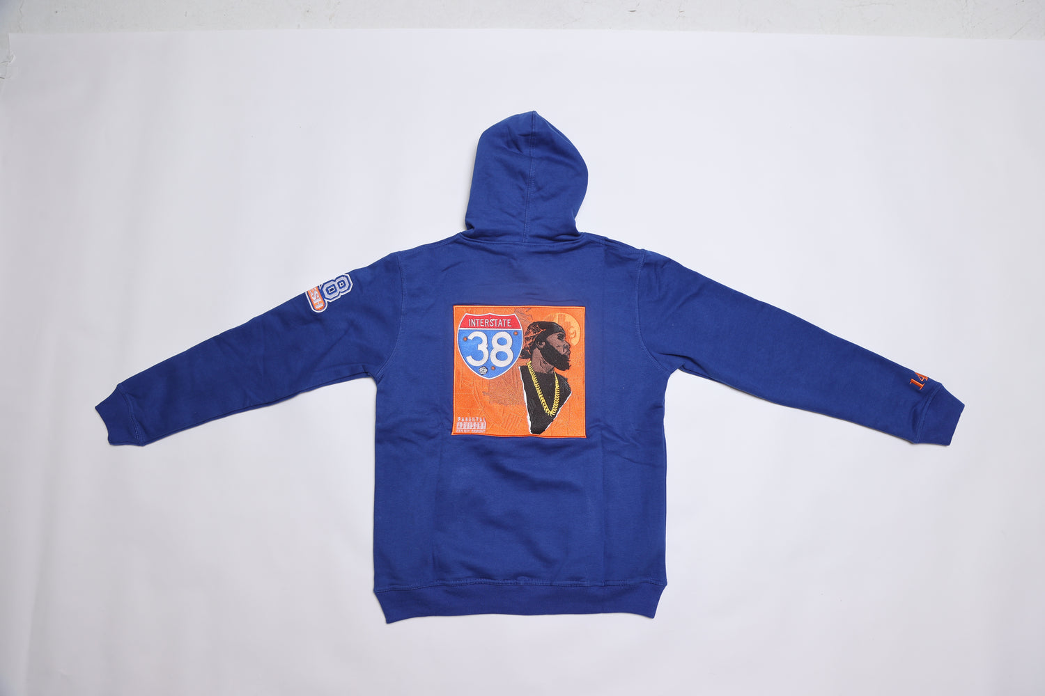 To mark 38 Spesh's 38th birthday, The TRUST Station is offering the ultra limited "Interstate 38" Hooded Sweatshirt in blue.