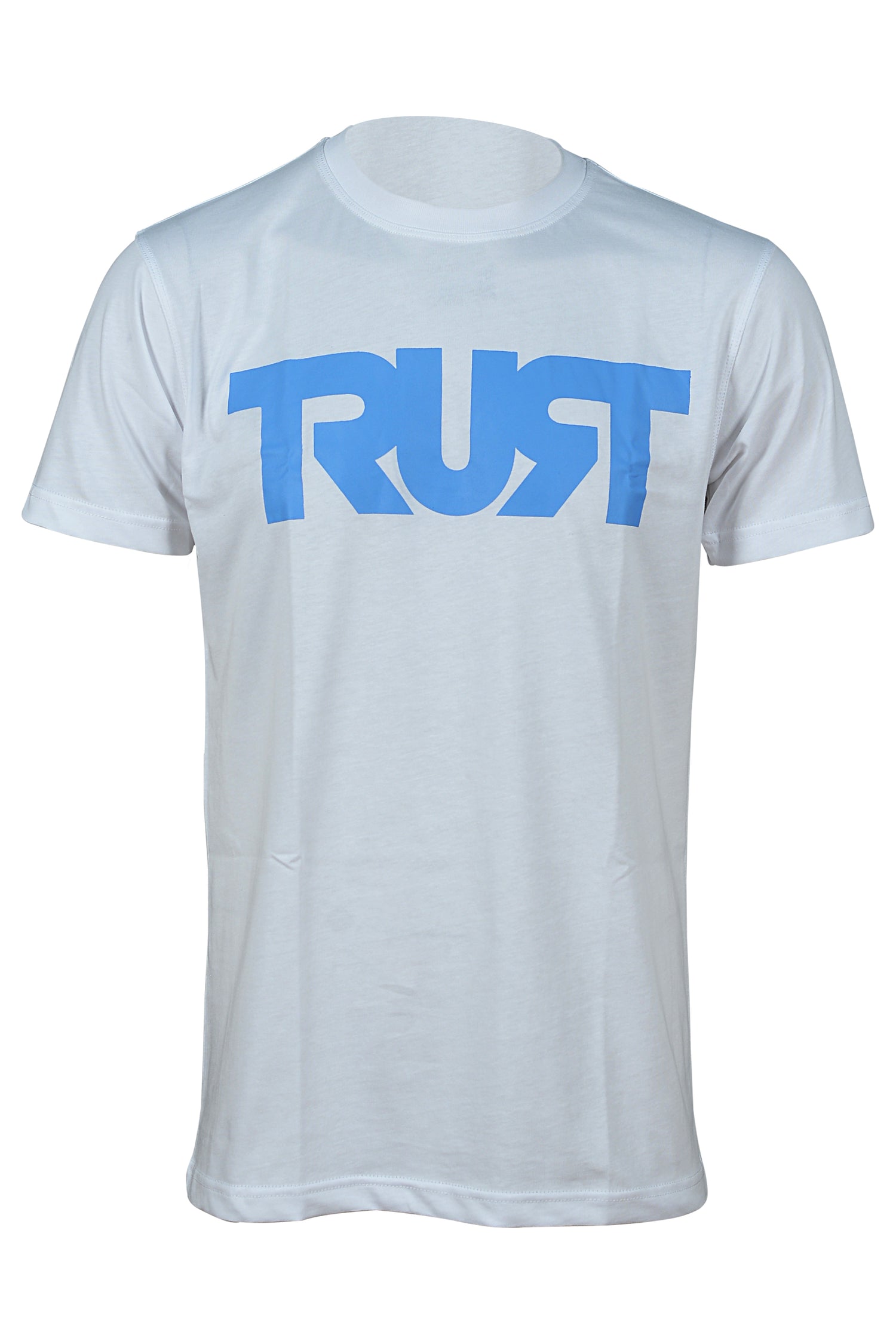 Ultra limited premium quality white t-shirt with blue TRUST logo on the front.